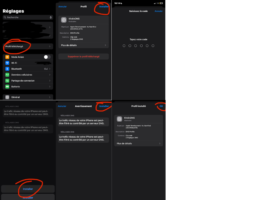 6- Cliquez sur profil télechargé et suivez les instructions si dessous