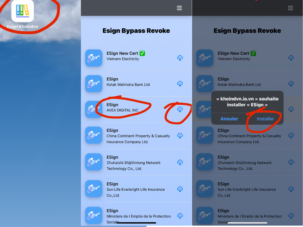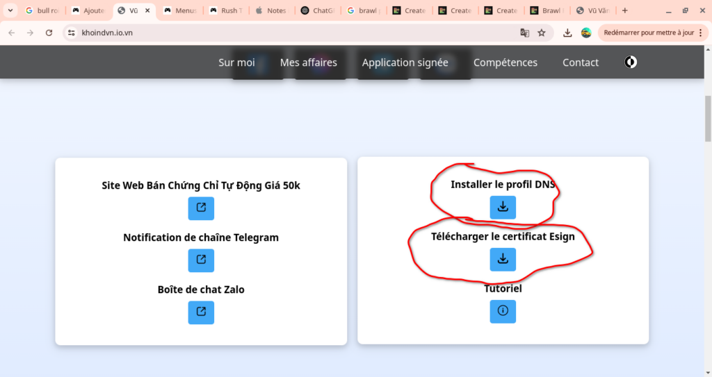 3- Descendez puis cliquez sur : Installer Le Profil DNS et Télecharger Le Certificat ESign :